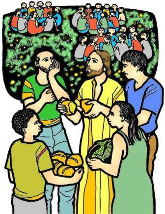 Unos pocos panes y un par de peces repartidos entre los cinco mil hombres, hicieron recobrar fuerzas tras la predicación a los que le habían escuchado atentamente y le habían seguido por multitud de lugares con el corazón esperanzado en el Mesías que estaban descubriendo.