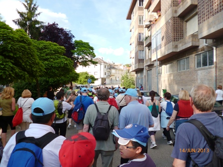 Llegó la tarde del 14 de Junio, viernes. Tarde de gratitud a Dios y a mucha gente. Celebramos en el arciprestazgo de Sabiñánigo la segunda Orosiada de la historia. Las siete de la tarde. Breve oración en la Parroquia del Pilar de Puente Sardas, dirigida por D. José Lasierra, párroco; y 250 personas comenzamos a peregrinar hacia Yebra de Basa. Dos horas caminando, para llegar a celebrar una vigilia de oración en la parroquia de Yebra. La Vigilia presidida por nuestro Obispo D. Julián y acompañado por diez sacerdotes. La reliquia de la cabeza de Santa Orosia, desde el centro del altar, agradecía nuestra oración y nuestra presencia.