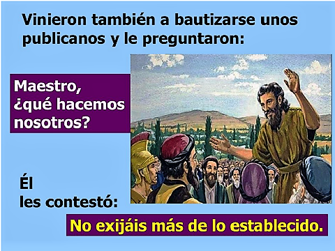 El relato del evangelio nos ha vuelto a poner sobre el tapete la figura de Juan el Bautista. La gente le pregunta qué debe hacer y para todos tiene una respuesta: el que tiene, que comparta; el que ejerce una profesión, que sea justo. Sería bueno que, cada uno de nosotros, le pudiera preguntar: ¿Qué tengo que hacer? Seguro que, a poco que reflexionemos, encontraremos la respuesta. Todos somos conscientes de las cosas que no hacemos bien, de lo que nos falta para ser como tendríamos que ser. Pidamos al Señor luz para ver y fuerza para cambiar.