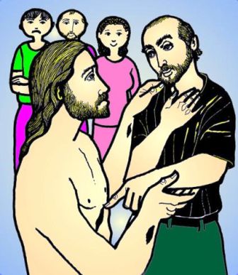 No estaba Tomás entre los discípulos la primera vez que Jesús se mostró; y era lógico que no creyera a sus compañeros cuando le decían que había resucitado. Y a los ocho días, de nuevo al comienzo de la semana, Jesús se aparece a los discípulos. Y tomando de la mano a Tomás le hace creer de nuevo en Él. Tomás nos representa a muchos de nosotros que necesitamos ver para creer. Y hasta ponemos la excusa de que si hubiéramos vivido en la época de Jesús seguro que habríamos creído. No seamos ingenuos.
