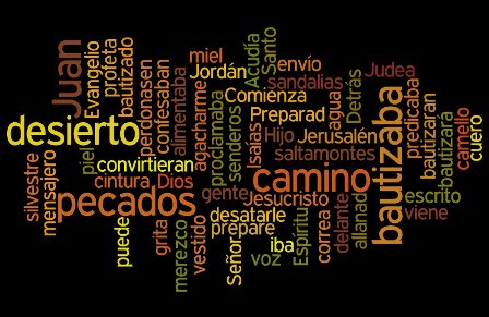 «Una voz grita en el desierto: Preparad el camino del Señor, allanad sus senderos; elévense los valles, desciendan los montes y colinas; que lo torcido se enderece, lo escabroso se iguale. Y todos verán la salvación de Dios.»