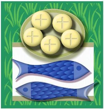 Jesús tomó los panes, dijo la acción de gracias y los repartió a los que estaban sentados, y lo mismo todo lo que quisieron del pescado.