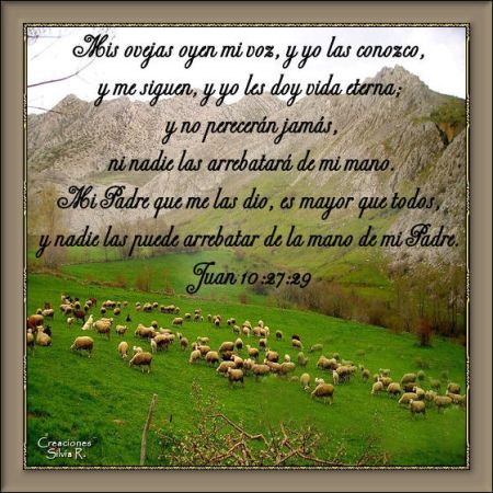 —«Mis ovejas escuchan mi voz, y yo las conozco, y ellas me siguen, y yo les doy la vida eterna; no perecerán para siempre, y nadie las arrebatará de mi mano.