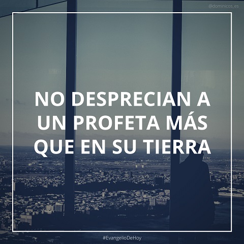 Tus palabras expresan la inmensa tristeza que sentiste, Señor, cuando aquellos que te habían visto crecer y con los que tantas veces habías hablado, ahora dudaban de ti; les extrañaba la sabiduría que salía de tus labios y los milagros que sanaban a tantos. Así que les dijiste: “No desprecian a un profeta más que en su tierra, entre sus parientes y en su casa.” Ayúdame, Señor, a aceptar la incomprensión y la crítica de aquellos de los que menos me lo podía esperar y a seguir adelante como Tú, siempre fiel a la voluntad del Padre y a la propia conciencia.