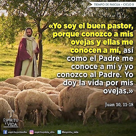 Yo soy el Buen Pastor, que conozco a las mías, y las mías me conocen, igual que el Padre me conoce, y yo conozco al Padre; yo doy mi vida por las ovejas.