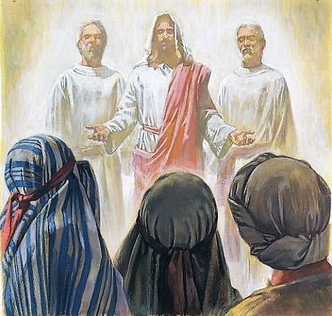 Todavía estaba hablando cuando una nube luminosa los cubrió con su sombra y una voz desde la nube decía:
