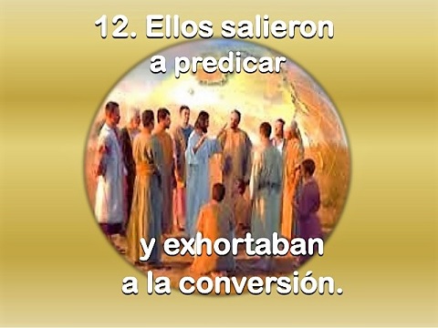 Ellos salieron a predicar la conversión, echaban muchos demonios, ungían con aceite a muchos enfermos y los curaban.