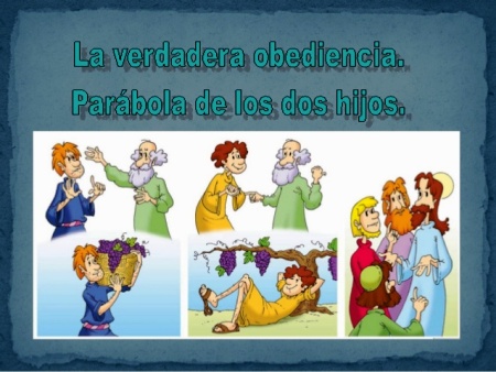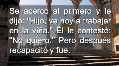 ¿Qué os parece? Un hombre tenía dos hijos. Se acercó al primero y le dijo: “Hijo, ve hoy a trabajar en la viña”. Él le contestó: “No quiero”. Pero después se arrepintió y fue. Se acercó al segundo y le dijo lo mismo. Él le contestó: “Voy, señor”. Pero no fue.