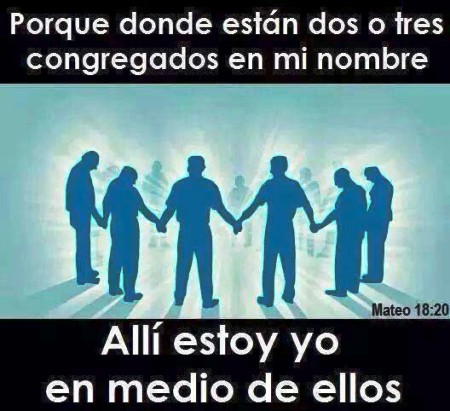 Os digo, además, que si dos de vosotros se ponen de acuerdo en la tierra para pedir algo, se lo dará mi Padre que está en los cielos. Porque donde dos o tres están reunidos en mi nombre, allí estoy yo en medio de ellos».