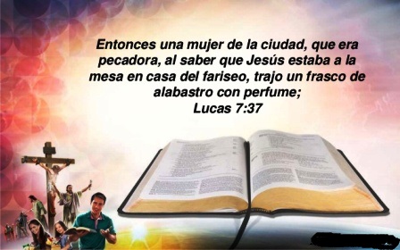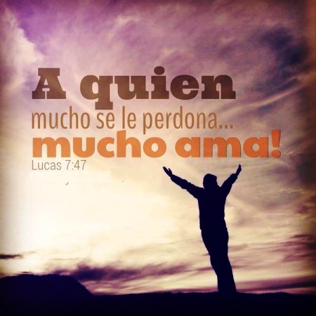 «¿Ves a esta mujer? He entrado en tu casa y no me has dado agua para los pies; ella, en cambio, me ha regado los pies con sus lágrimas y me los ha enjugado con sus cabellos. Tú no me diste el beso de paz; ella, en cambio, desde que entré, no ha dejado de besarme los pies. Tú no me ungiste la cabeza con ungüento; ella, en cambio, me ha ungido los pies con perfume. Por eso te digo: sus muchos pecados han quedado perdonados, porque ha amado mucho, pero al que poco se le perdona, ama poco».