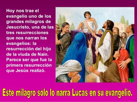 En aquel tiempo, Jesús se fue a una ciudad llamada Naín, y caminaban con él sus discípulos y mucho gentío.