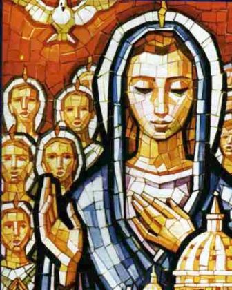 Tú, que junto a los apóstoles has estado en oración en el cenáculo esperando la venida del Espíritu de Pentecostés, invoca su renovada efusión sobre todos los fieles laicos, hombres y mujeres, para que correspondan plenamente a su vocación y misión, como sarmientos de la verdadera vid, llamados a dar mucho fruto para la vida del mundo.