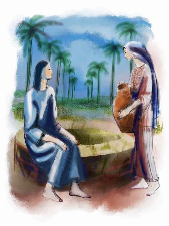 Llega una mujer de Samaría a sacar agua, y Jesús le dice: