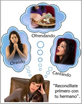 Por tanto, si cuando vas a poner tu ofrenda sobre el altar, te acuerdas allí mismo de que tu hermano tiene quejas contra ti, deja allí tu ofrenda ante el altar y vete primero a reconciliarte con tu hermano, y entonces vuelve a presentar tu ofrenda.