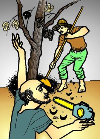 "Ya ves: tres años llevo viniendo a buscar fruto en esta higuera, y no lo encuentro. Córtala. ¿Para qué va a ocupar terreno en balde?"