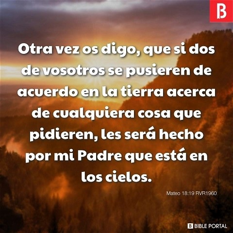 Os digo, además, que si dos de vosotros se ponen de acuerdo en la tierra para pedir algo, se lo dará mi Padre que está en los cielos. Porque donde dos o tres están reunidos en mi nombre, allí estoy yo en medio de ellos».