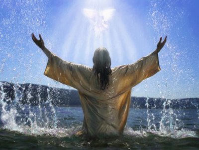 Apenas salió del agua, vio rasgarse el cielo y al Espíritu bajar hacía él como una paloma. Se oyó una voz del cielo: